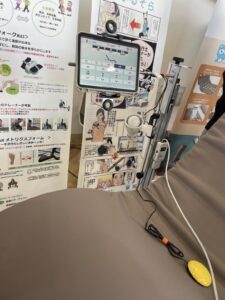 iPadでうコミュニケーションアプリコンテンツ 指電話というアプリと連動して自身でベッドを操作したり、ボタンや指で会話をしたり等