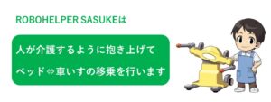 まるで人が介護するようにベッドから優しく抱き上げ、介護をうける方をゆっくりと穏やかに車いすに着座させることができます