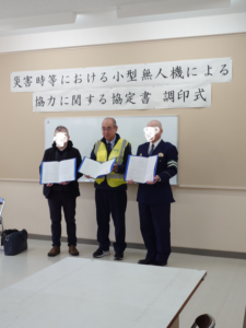 災害時における小型無人機による協力に関する協定書 調印式にて