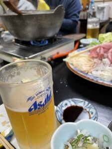 忘年会は、寒い冬にぴったりの4種類のお鍋を皆で囲んで談笑。